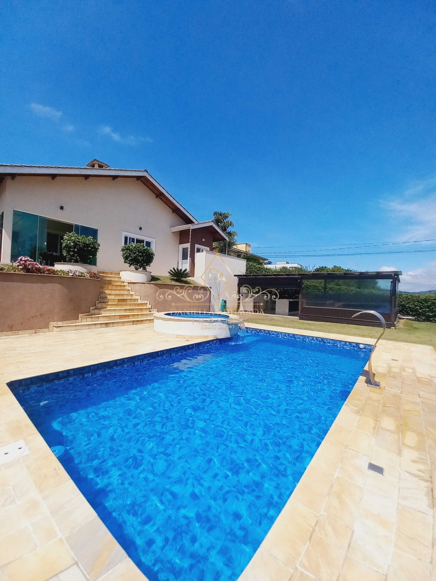 Ao sair para a área externa, você será surpreendido por uma bela piscina com SPA, perfeita para relaxar e se refrescar nos dias quentes acompanhada de um lindo jardim e uma belíssima vista da Pedra Grande de Atibaia. Para os amantes do churrasco, a propriedade possui duas áreas gourmet, uma integrada à casa e outra próxima à piscina, equipadas com churrasqueira, onde você pode desfrutar de momentos especiais com seus convidados.
