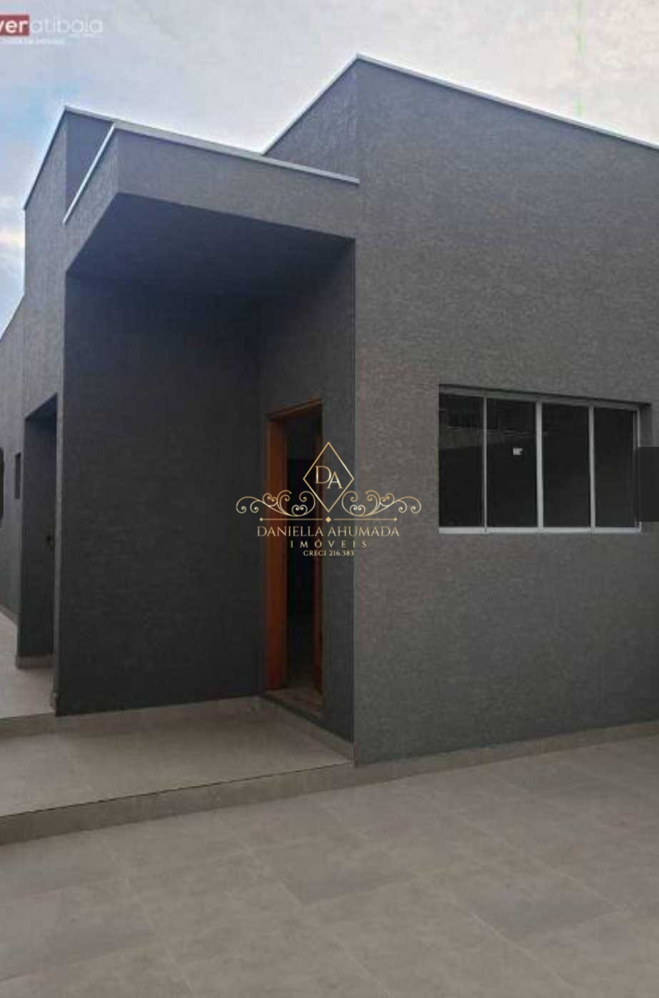 A casa é nova, térrea, semi isolada, recuada com 2 vagas, living em conceito aberto com a cozinha, vista para a Pedra Grande;